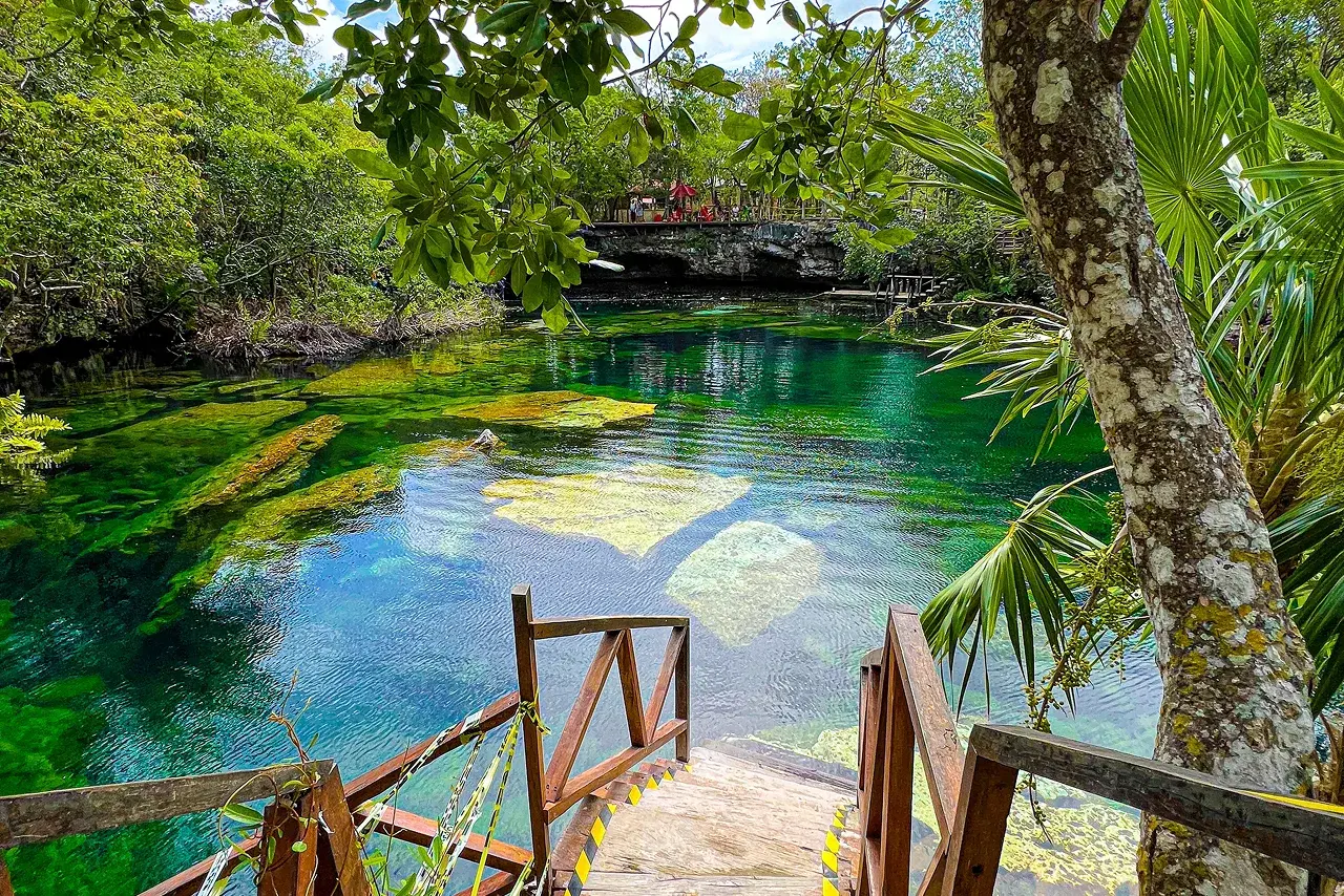 What makes it special is that it’s an “open” cenote, so it feels like a massive tropical pool surrounded by jungle.